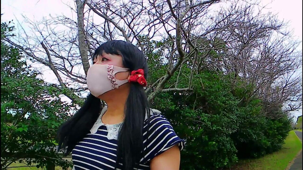 There are many anglers and people walking in the park during the day, and the risk of being exposed is high, so I get nervous. Wear pants that open your crotch and take a walk in the open. On the road with a lot of car traffic, a rotor with a bell is inserted into the tuck and anus to perform a masturbation challenge.