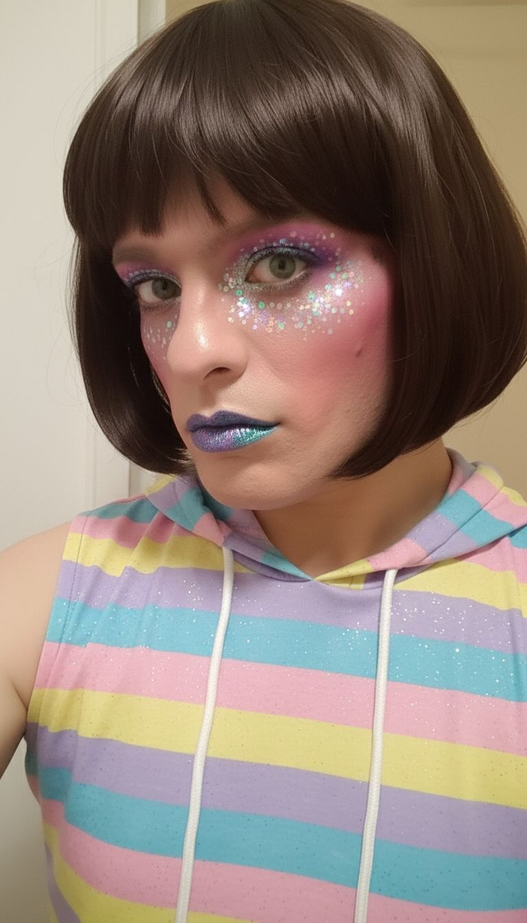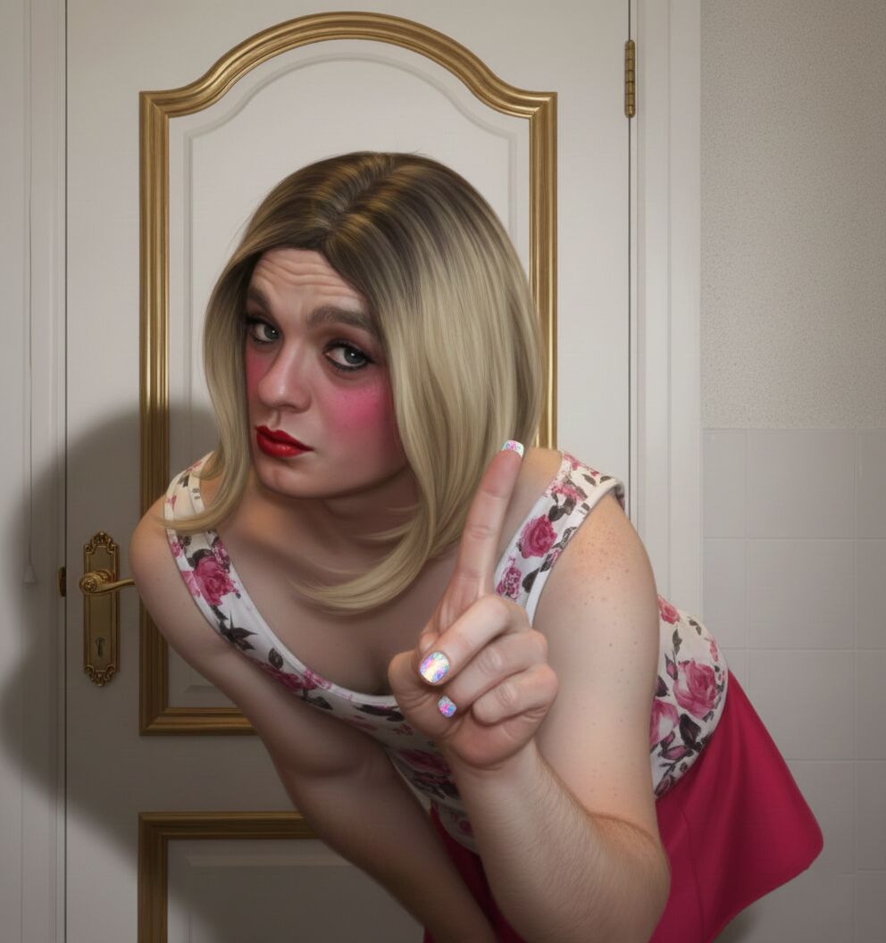 Sissy Lilly pisses on her feet and long multicoloured toenails