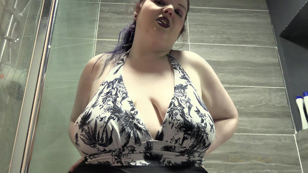 I'll take you on a journey of slow, agonizing pleasure. With my voice as your only guide, you'll be instructed to edge, to tease yourself to the point of no return, only to be pulled back by my command. You'll be tormented by the sound of my voice, the sight of my curves straining against the swimsuit, and the knowledge that you're completely at my mercy. Imagine my hands, adorned with sharp nails painted in the deepest, richest purple, guiding your every move. My voice, husky and commanding, whispers in your ear, telling you exactly how to touch yourself, how hard, how soft, and for how long. You'll be desperate to cum, to release the tension building inside you, but I'll deny you that pleasure, again and again, because your torment is my amusement.