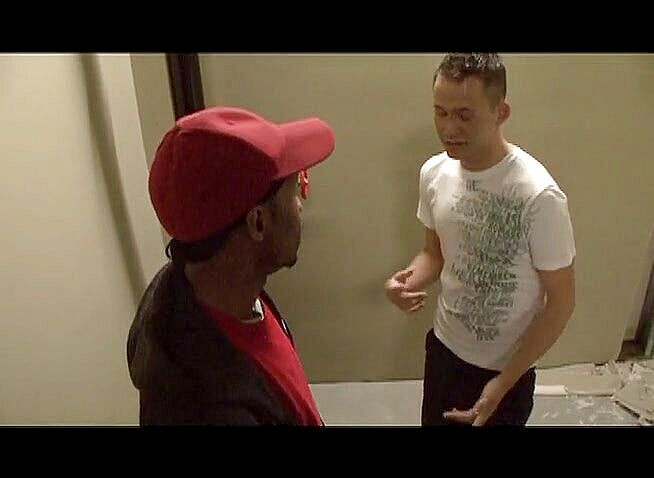 Black man fucking his white slut bareback and making him cum even harder with deep poking.