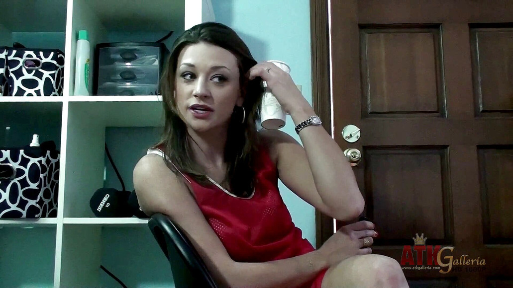 Cutie Carmen McCarthy gives a little interview and poses for a photographer on the set of her latest scene.