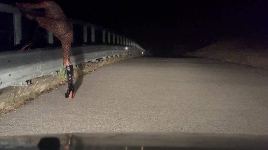 Leopard Catsuit masked Sissy Slut with Plateau High Heel Boots