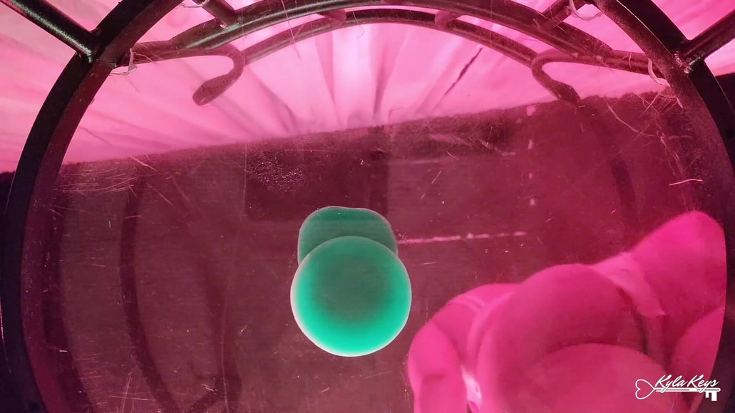 One big green suction dildo plus one clear bottom chair equals plenty of orgasms.