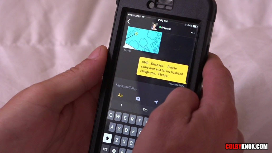 Colby has been putting in some long hours managing the business to keep operations at Colby Knox running smoothly and to provide new gay porn for their fans. Mickey wanted to do something special and give him a much needed break from the workload in the office so he comes up with the perfect distraction. Like any good husband, he knows what his man wants so he turns to grindr to find a fresh hot ass to make a house call. Mickey soon finds Grayson Lange, the perfect boy with a big cock and an insatiable ass for fucking. Grayson likes what he sees and agrees to bring that hot ass over to the Colby Knox house for an afternoon office delivery. Mickey gives him directions to the office with instructions to knock on the door and when a Colby answers, asks him to bend him over and give him his load. A surprised Colby opens the door and is happy to offer up his big cock to a hot mouth and tight ass from a complete stranger. Grayson drops to his knees and gets right to work deep throating that