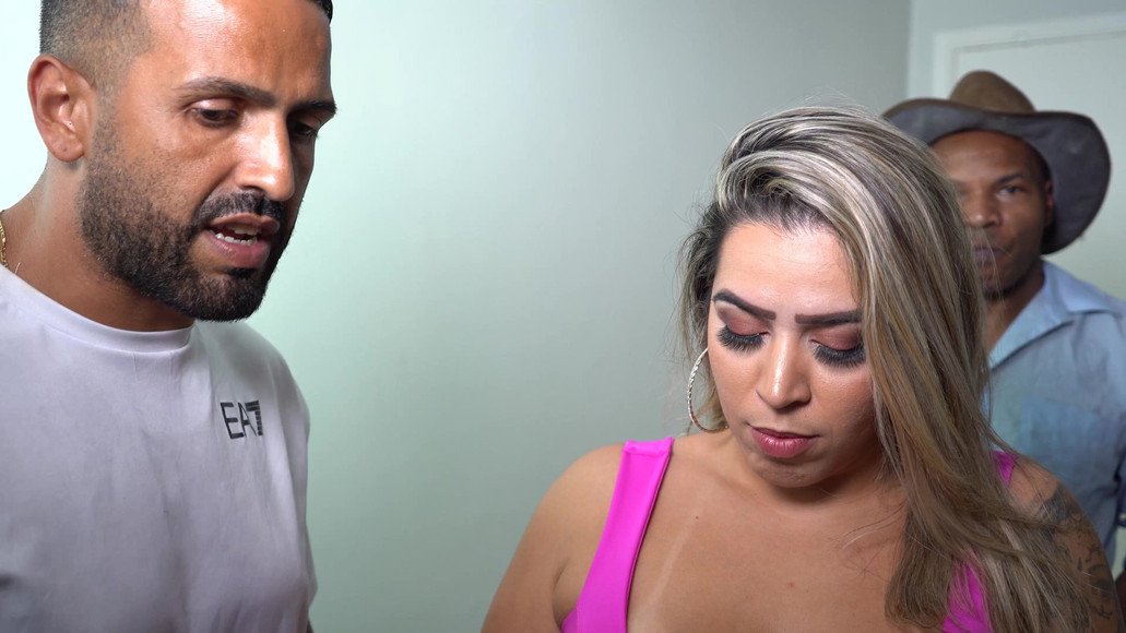 Behind the scenes of porn with a blonde, fucking two, until she likes milk