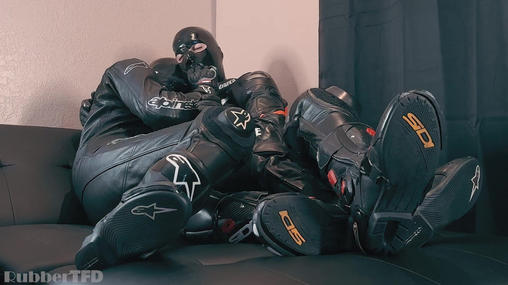 Got rubber_fx geared up in full leather bike suit with me with boots and gloves. We stimuated each other with our gloves and mouths.