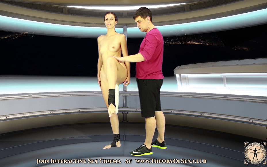 Julia is a submissive, who needs to be physically trained to perform special tasks. Her dressing is a white butt plug tail and sport wraps on her feet. Alex is a coach, who doesn't give Julia to relax. The workout takes place in the cosmos.