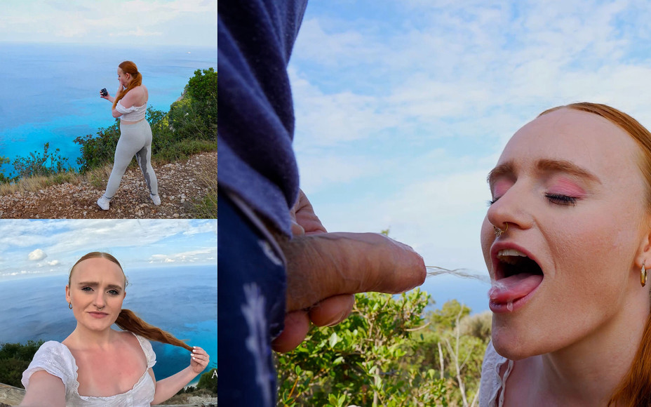I took Pixie around the island to show her around, it was er first time on that island and beauty of the island is incredible ... While walking she started to feel that she will need to piss soon and at first she didnt want to wet her self as she had leggings, gary, and people would noticed ... but what the hack, she did it anyway ... while filming her I had to pee as well and I used Pixie as my public toilette ..