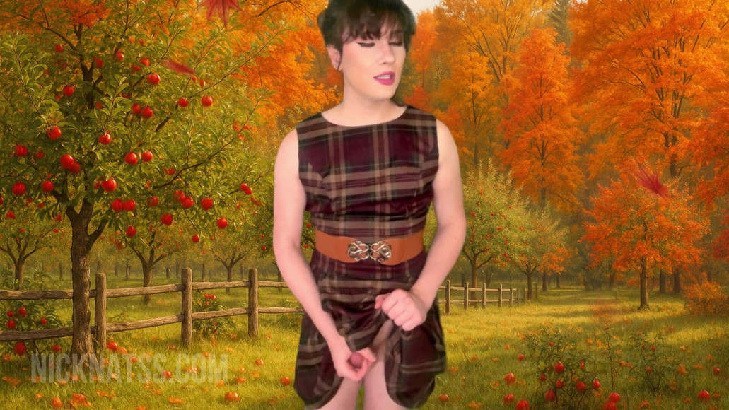 Thank you for taking me on this adorable autumn-themed little outing together, I know that an apple orchard isn’t really your scene, along with all of these other girly activities, but it means a lot to me that you are out here being a good boyfriend and that you love being seen with me even though I’m trans! It makes me want to show you a little appreciation, a little appreciation MY way! Oh don’t be embarrassed, no one is around, and you love looking at my girlcock as I pull up my skirt! I want to make you my little slut, and fuck your ass and put you in chains and a ball gag and do all kinds of nasty unspeakable things to you! All when we get home, changing out of this domestic little cute dress into something better and make you my slut slave ALL night long! No one is listening, stop blushing, but maybe don’t stop- I love it when you blush, and I will be having you blushing plenty when we get home later!
