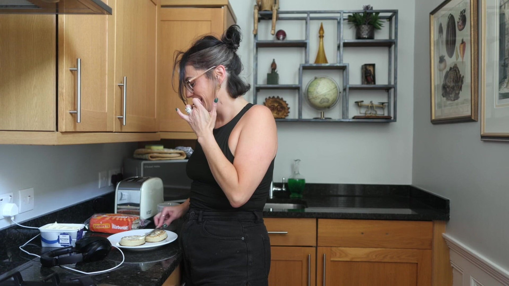 Your Domme roommate is sweating from the heat out, and you're desperate for a sniff of her armpits. She notices your desire and indulges you, humiliating and teasing you for your perverted interest in her sweaty fragrance.
