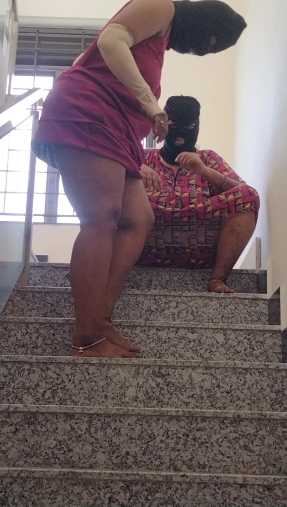 Duplex house hot sex at staircase. Two aunties hot pussy finguring and boobs sucking nipples feeding standing sex . Cock sucking hot dirty talking