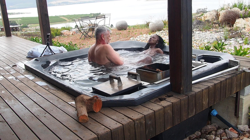 Wrapped in morning mist, we find warmth in our mountain hot tub overlooking the lake. Steam and Passion rise together.