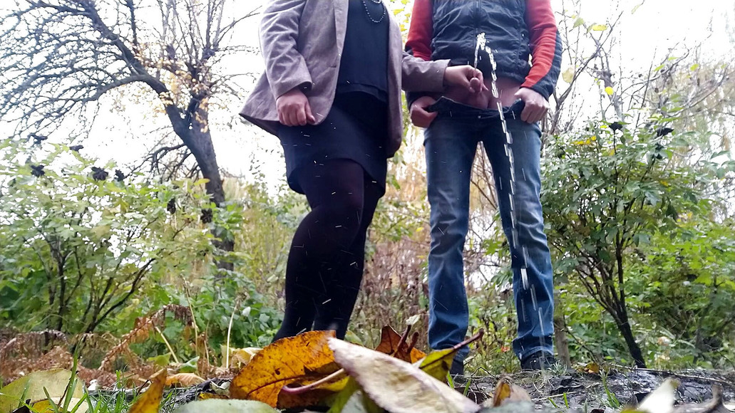 Depraved housewife helps neighbor pee on the street