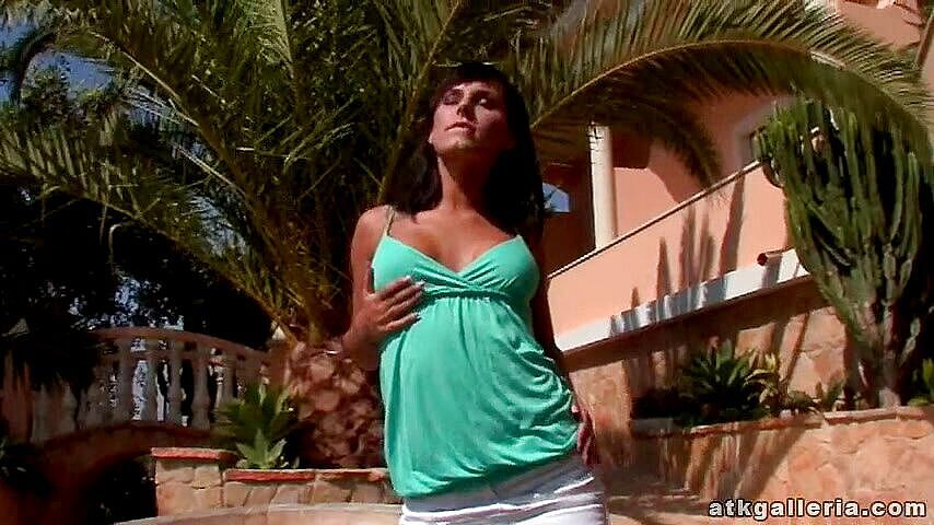 Stacy finger fucks her sweet snatch outdoors.