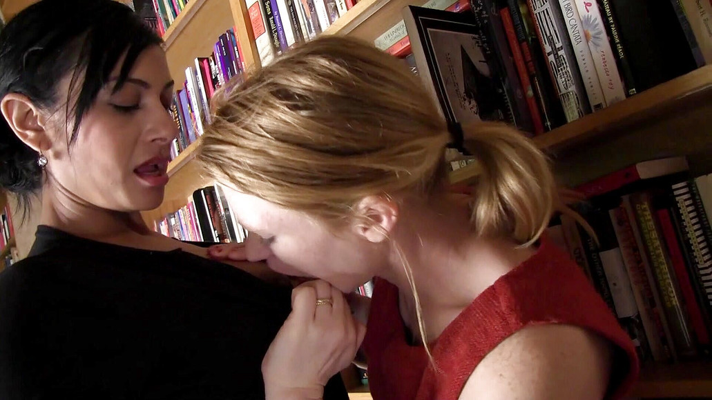 Horny Girls In The Library Having Strap on Lesbian Sex