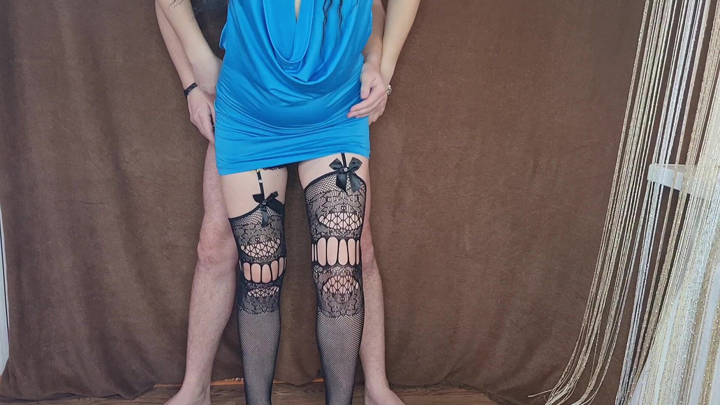 The hot wife put on her favorite stockings and butt plug in a sexy dress for her friend and lover. She loves double penetration orgasms very much