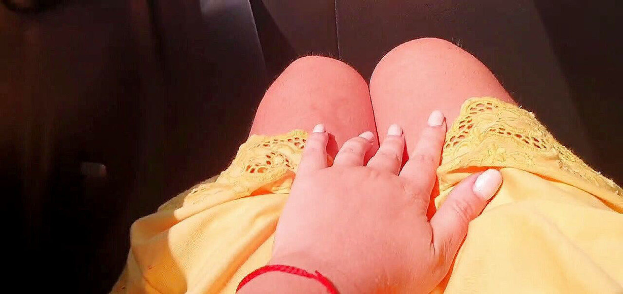 Horny baby in taxi touching her wet pussy