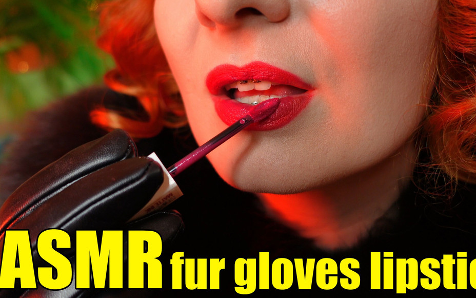 Sexual redhead woman, close up of mouth fetish, teeth with braces, red lipstick