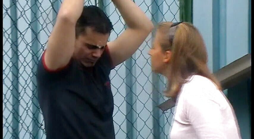 Richie has not followed some orders of his mistress Melady. Among other things he has invited his friends into the flat without their permission again. Therefore Melady takes him to a remote area to outside. It ties up his hands with handcuffs to bars to miss him his punishment. He is then placed by it next to task why he has not followed her orders. She gives him slaps and punches into the belly again and again and rams him her knee into the belly. Between this spits them for him into the face again and again and degrades him verbally. Richie desperately looks around, whether he sees somebody who can help him. But Melady to him which will find nobody for him here makes clear. Further their slaps, hers spits and he must so and let her insults break out about himself. Tells her to him, which will remain connected now here for two days when she has finished with him. He must look on the ground and Melady goes away he and can simple so back.