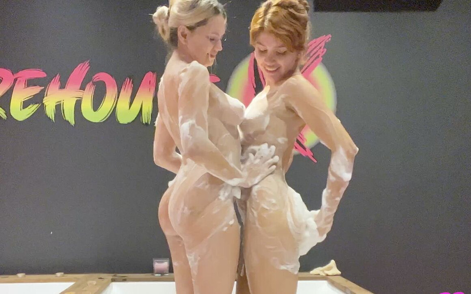 My blonde busty friend is a horny girl. She told me to shower together this evening but I had no idea it could turn this way. So we started by cleaning each other’s bodies with a lot of foam, I was touching her boobs and she was touching me. We were giggling and joking about it until she kissed me. While kissing, we started touching our intimate parts in a more passionate and sexual way. I had never felt like this for a girl but I was liking it a lot. We started masturbating each other with the foam and hot water. We cum so good and continued bathing eachother