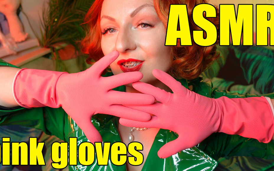 Sexual lady with red lips sitting in PVC playing with gloves, doing amazing sounding...