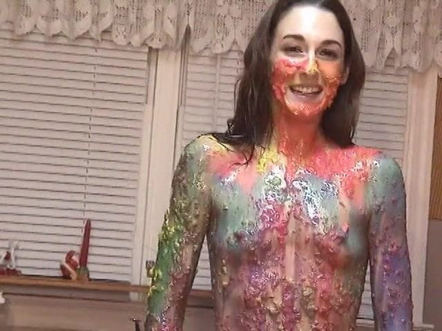 小奶子年轻女郎在厨房地板上用食物物质自慰