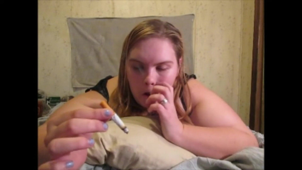 Fat ugly bitch smoking through her nose!