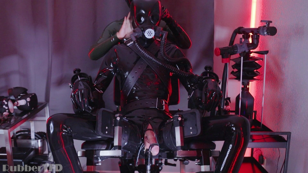 The rubber series of Ventradrone continues this time captured on a restrained station with his hole drilled, nippled played, and cock electro and milked, while his breathing is being circulated with pp on a fixed time interval watching some rubber porn to boost his load {cumshot at 24:30}. A rubber sight to see!