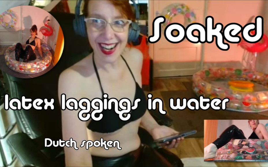 Doing a webcam show and wearing latex leggings in a small pool with cold water (Dutch spoken) I'm going all wet! The water is very cold!