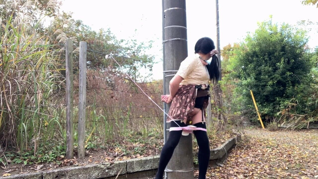 On the roadside where someone might come, I'm blindfolded and left tied up with a bell-attached vibrator inserted into my pussy and ass. Tied to a tree, I can't escape. Being blindfolded and unable to see my surroundings made my body even more sensitive. I came much faster than usual.