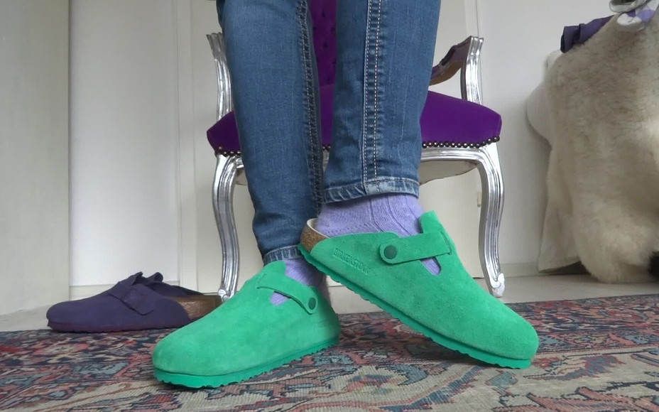 Today I'm going to show you a socks and slippers show! I have 3 pairs of purple socks that I wear with 2 pairs of slippers. The slippers are made of suede in the color turquoise and purple. I show you beautiful posing, I walk or sit in the slippers. Again and again you can sniff my socked feet! Finally you can sniff the socked feet again and then cum on my socked feet! Los inject a lot of sperm on my sexy socks!