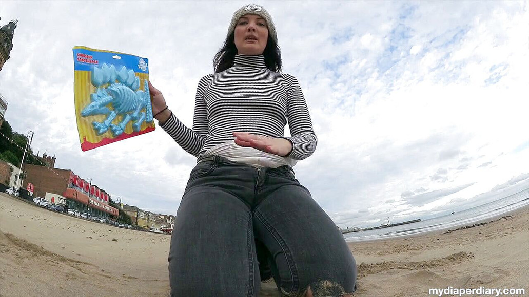 I have been shopping and found an absolutely adorable dinosaur fossil kit to use on the beach. I find a nice little spot close by the road and set about scooping up sand and making my fossil. I barely notice the passers by who could easily spot my Tena Slip Maxi which is peeking out of the top of my jeans and creating a huge bulge at the front.