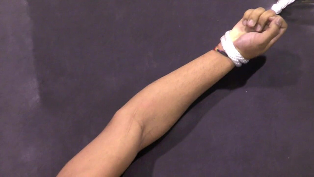 With Master Eric at the helm, the slave mates continue to suck dick and balls in the ever-intensified sex trio. Every faulty lick or suck, and every whisper of a complaint or resistance, is met with the split of the rope flogger and Master Eric’s dominance. After finally whipping his cock-suckers into shape and obedience, Master Eric feels like getting off. Getting rid of Adam for the time being, he starts stroking his dick over that perfect Wes figure. Wes, bound and powerless, can do nothing but take the load of cum Eric shoots all over his chest, the cum’s white shining beautifully on that rich black skin. When Master Eric goes to clean up, he leaves the cum-lathered Wes to struggle hopelessly.