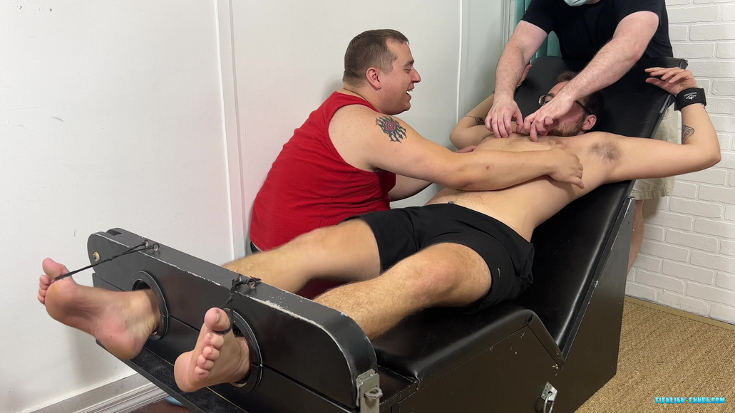 It's the start of a full session of round robin fun with Matt, The Doctor and CDubs! The handsome and bearded CDubs is first in the chair and you can bet Matt and The Doctor have plenty planned for him. They start out with his big sexy feet, using their fingers and their fave tools to make him giggle and plead for mercy. He won't get a reprieve, of course, not until they've fully explored his sexy body.