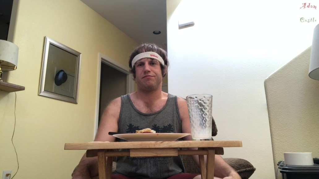 Happy Cinco de Mayo my loverman! You must be wondering why I decided to duct tape your hands. I'll tell you why! I have something really good that I am cooking for you. It's a burrito and some shrimp! Want some? No, I won't give you any of my food to you! You are a terrible lover and your dick is terrible. Smaller than my pinky finger! You are in duct tape so you can watch me eat which I know you love. Also when I'm done eating, I'm going out to party for the Cinco de Mayo. I'll be back. Just got back from partying and I will let you suck me! PSYCHE! I'm not letting you suck anything off me. Just stay there in duct tape and watch me jerk off. You love watching your love, jerk off knowing my dick is bigger than yours? I know you do! My hairy chest is more manly than you! Now I cum really good with the protein of the burrito in a cup! Now sip the cum from my cock bitch! Eat it, eat it, eat the disgusting burrito cum bitch!