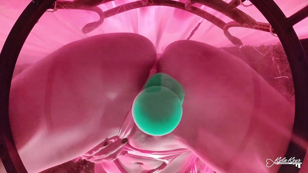 One big green suction dildo plus one clear bottom chair equals plenty of orgasms.
