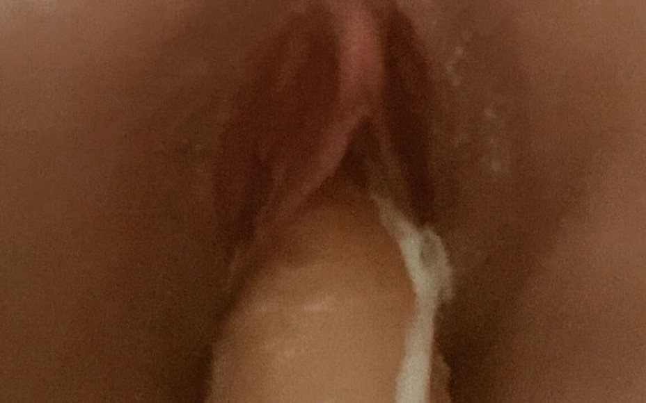 Horny wife rides big dildo and gets filled with cream. Stretching her holes.